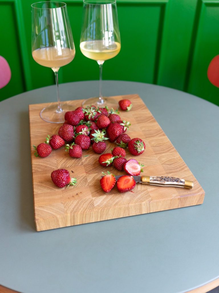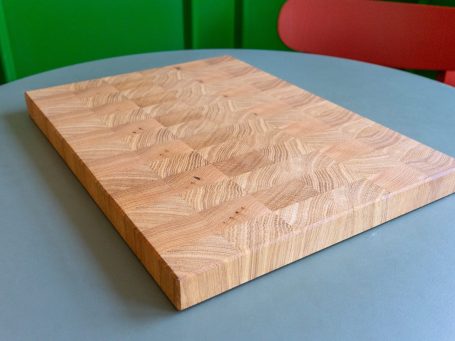 Meine Schneidebretter werden so geschnitten, dass die Hirnholzseite als Schnittfläche dient. Das bedeutet: Die Holzfasern stehen senkrecht zur Oberfläche, wodurch eine besonders robuste und langlebige Schneideunterlage entsteht.
