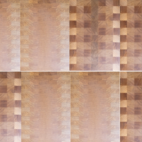 Stirnholz-Schneidebretter haben eine besondere Eigenschaft: Schnittspuren sind deutlich weniger sichtbar, da das Messer zwischen die Holzfasern eindringt, anstatt sie durchzutrennen. Dadurch behalten die Bretter länger ihr ansprechendes Aussehen.